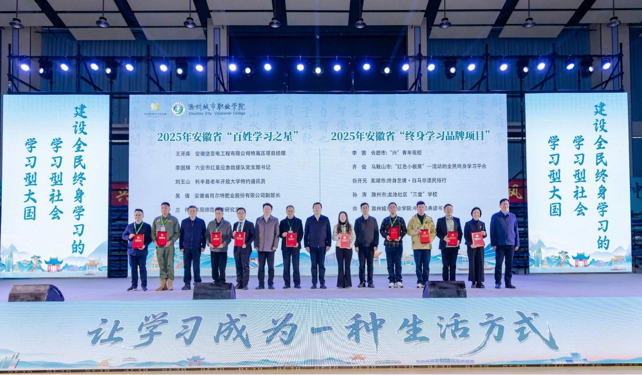 11月18日,以“让学习成为一种生活方式”为主题的2025年安徽省暨滁州市全民终身学习活动周开幕式在滁州举行。本次活动由安徽省教育厅、滁州市人民政府主办,滁州市教育体育局、滁州城市职业学院承办,安徽开放大学、滁州市非遗文化研究院协办。